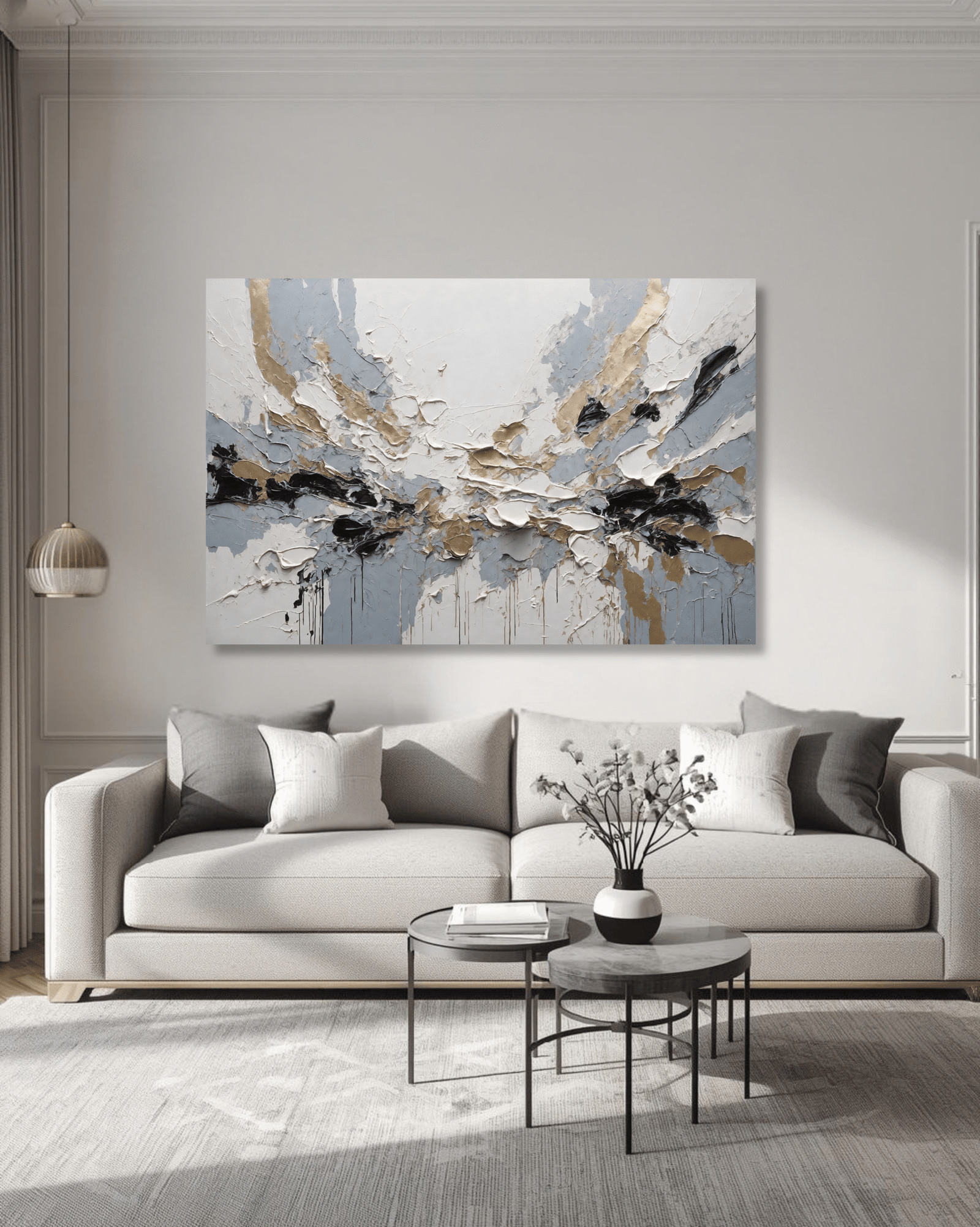 Un tableau peut devenir le cœur de votre pièce, attirant naturellement le regard et donnant du rythme à votre décoration. Pensez à son emplacement pour maximiser son impact visuel.