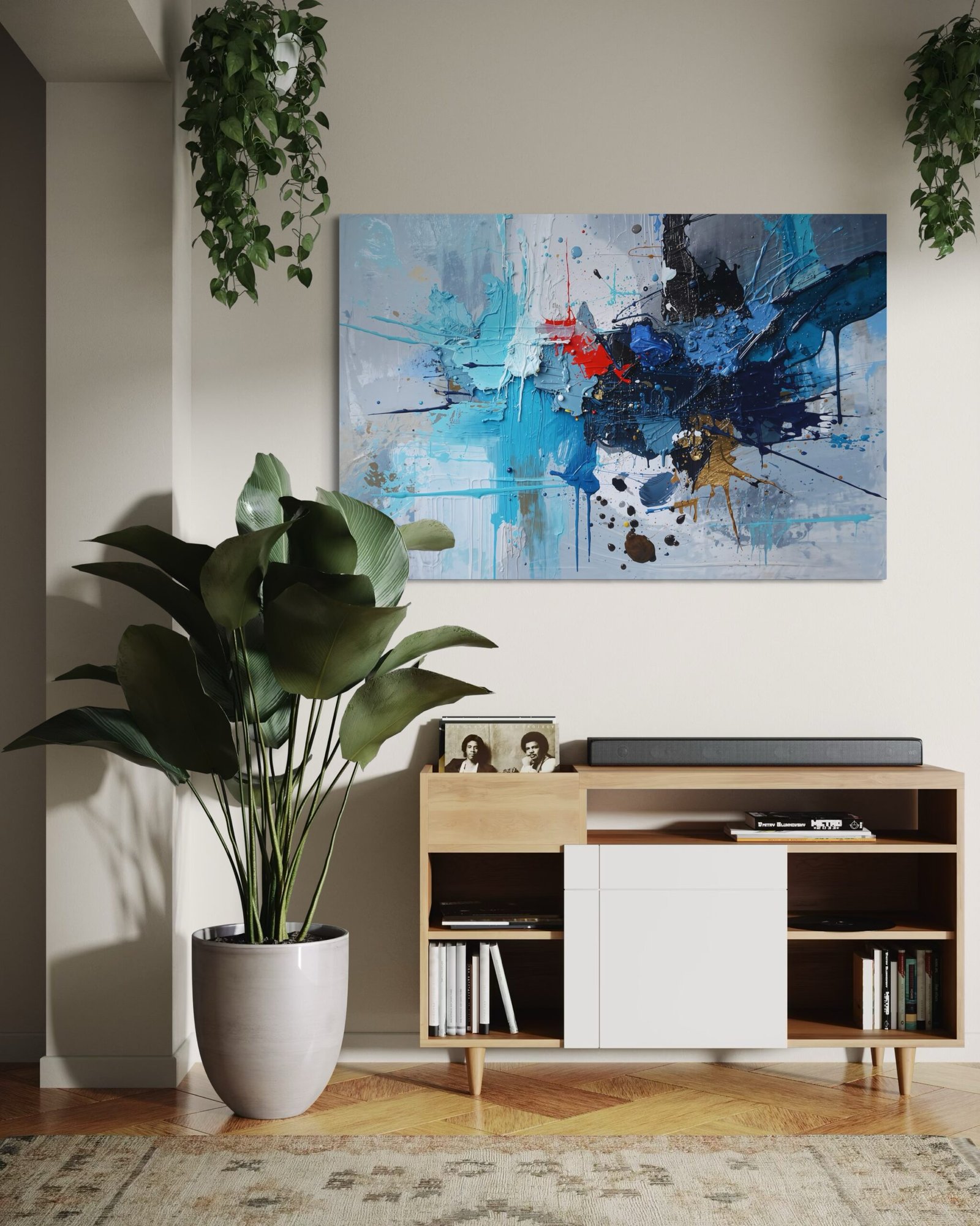 Un tableau peut devenir le cœur de votre pièce, attirant naturellement le regard et donnant du rythme à votre décoration. Pensez à son emplacement pour maximiser son impact visuel.