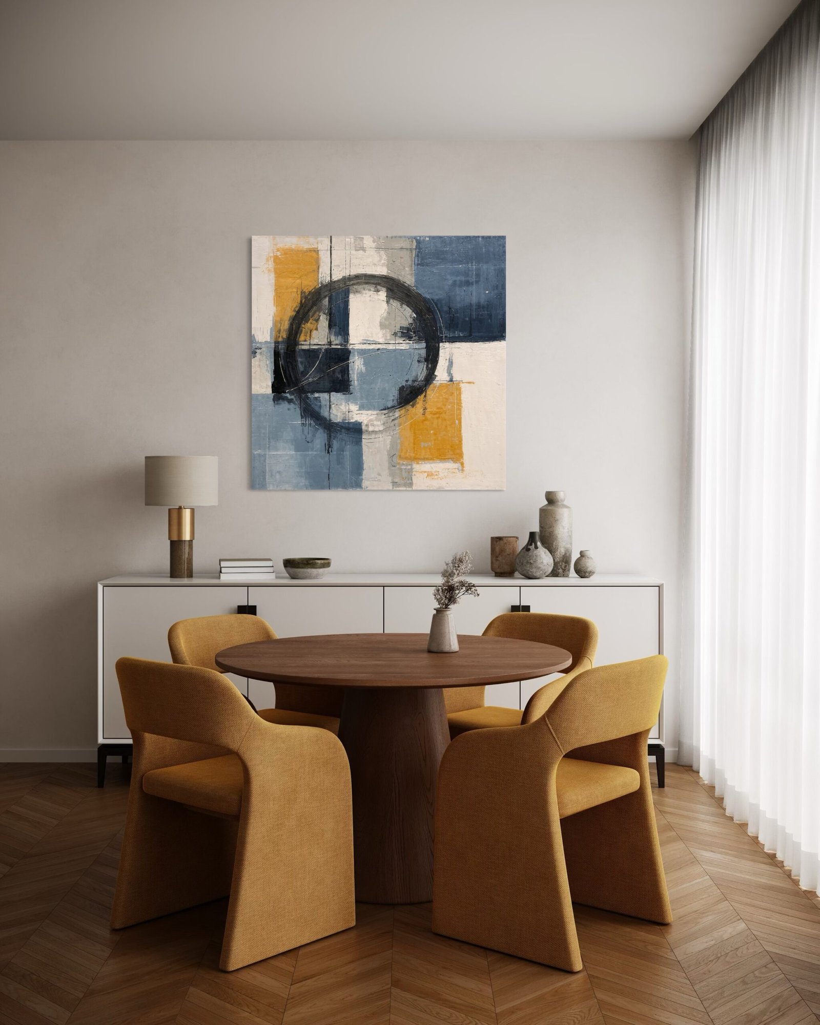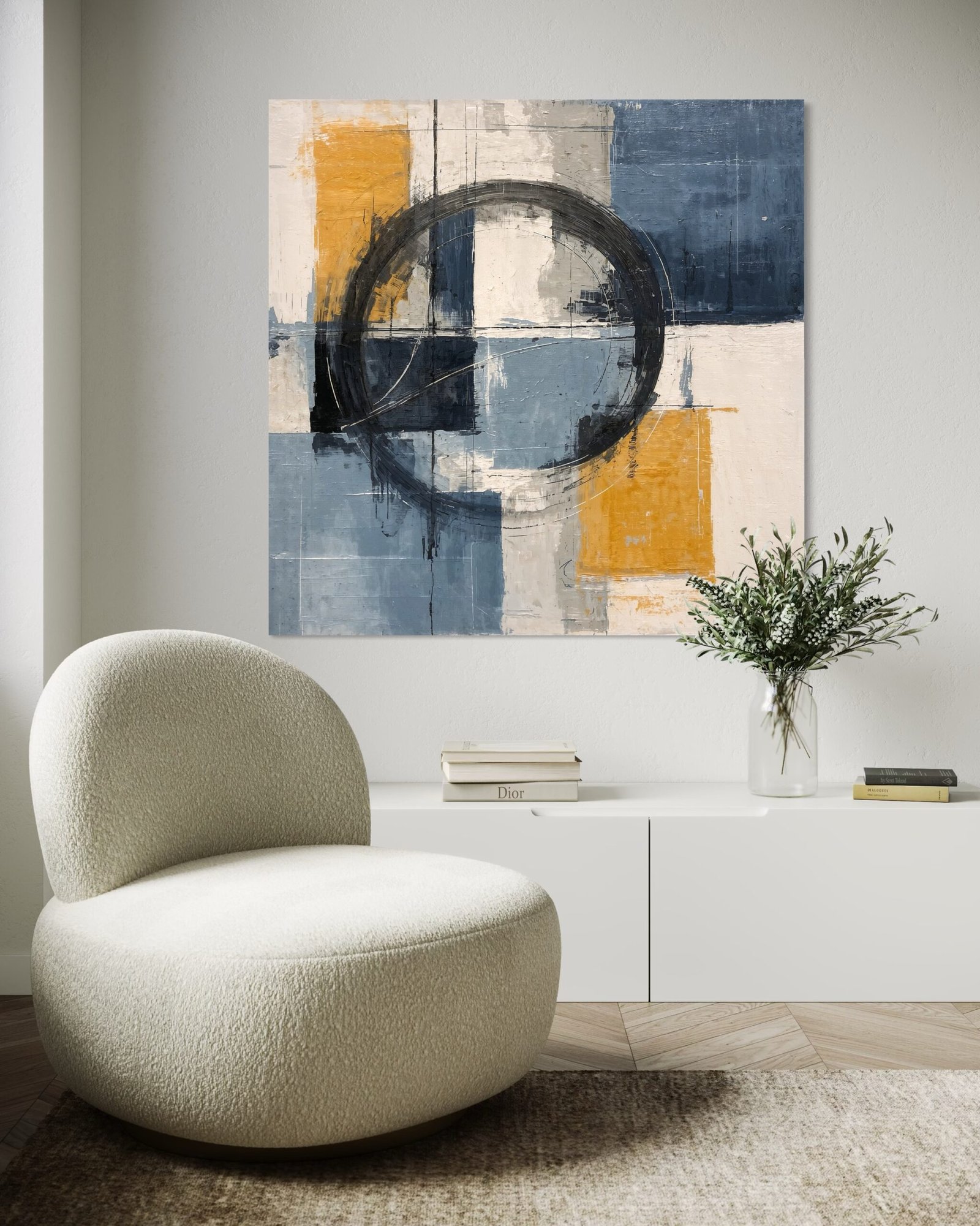 Un tableau peut devenir le cœur de votre pièce, attirant naturellement le regard et donnant du rythme à votre décoration. Pensez à son emplacement pour maximiser son impact visuel.