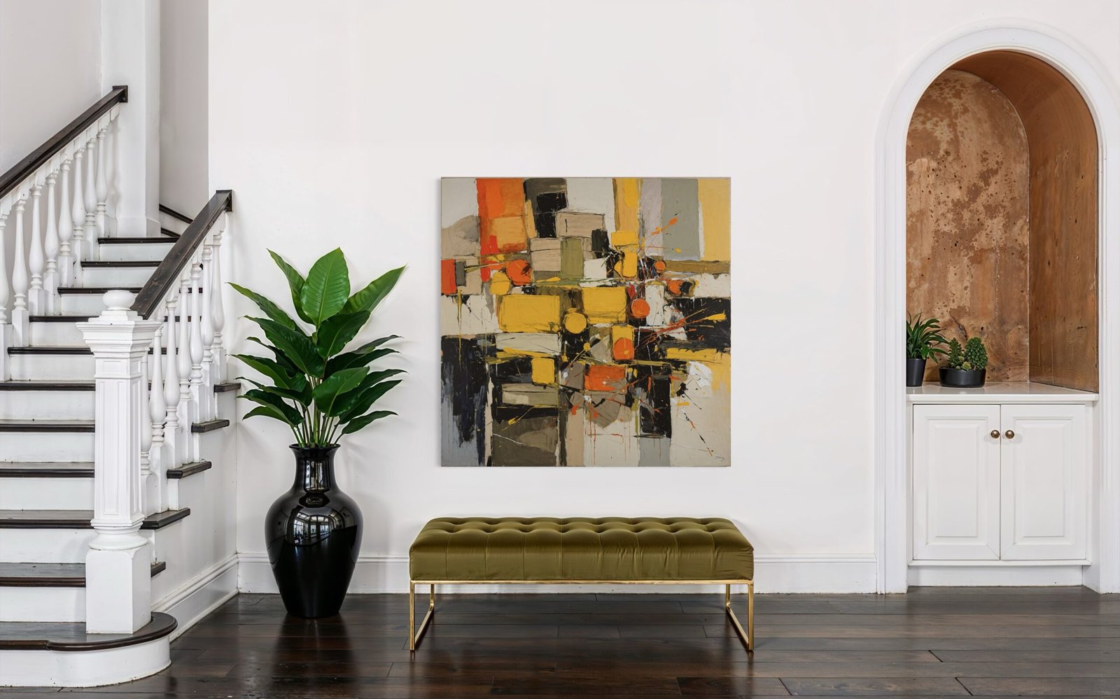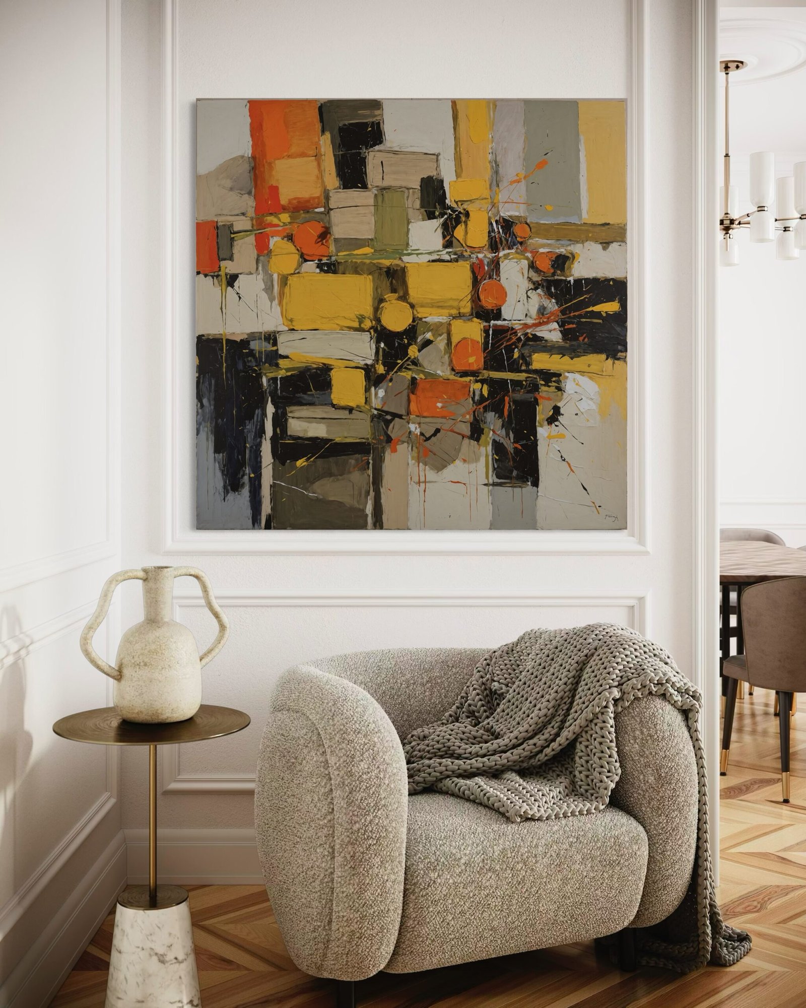 Un tableau peut devenir le cœur de votre pièce, attirant naturellement le regard et donnant du rythme à votre décoration. Pensez à son emplacement pour maximiser son impact visuel.